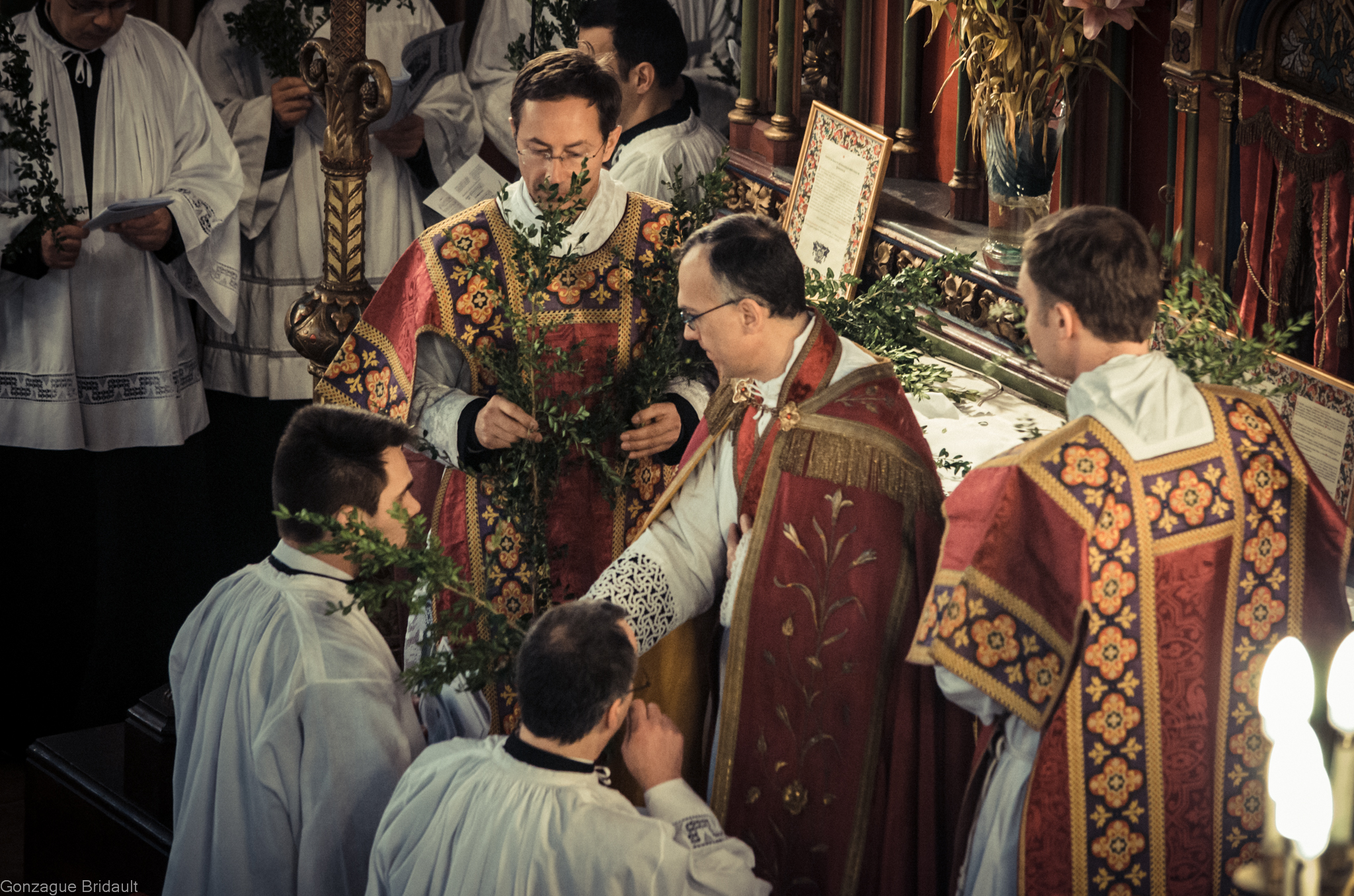 Distribution des Rameaux par le célébrant.