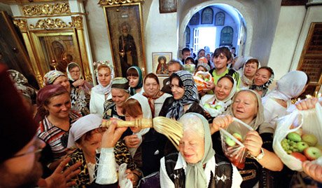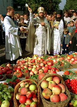 En Russie, où le raisin était un met impossible à produire en raison du climat, l’usage se prit de bénir des pommes le jour de la Transfiguration en place du raisin, au point que le nom populaire de la Transfiguration devint la fête du « Sauveur des pommes ». De nos jours, les fidèles apportent toujours des pommes en ce jour, mais aussi du raisin et des autres fruits qu’il est plus aisé de trouver désormais dans les commerces. Voici quelques images des bénédictions de la Transfiguration :